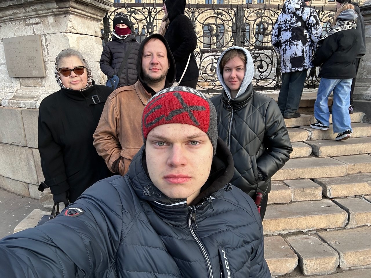 Праздничному настроению соответствовала солнечная погода, а сопровождали студентов и членов кружка "Военная история России" преподаватель истории - Дзюбенко Михаил Васильевич и зав. музеем "Имен связующая нить" - Ульяновская Ольга Александровна.