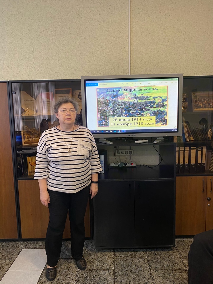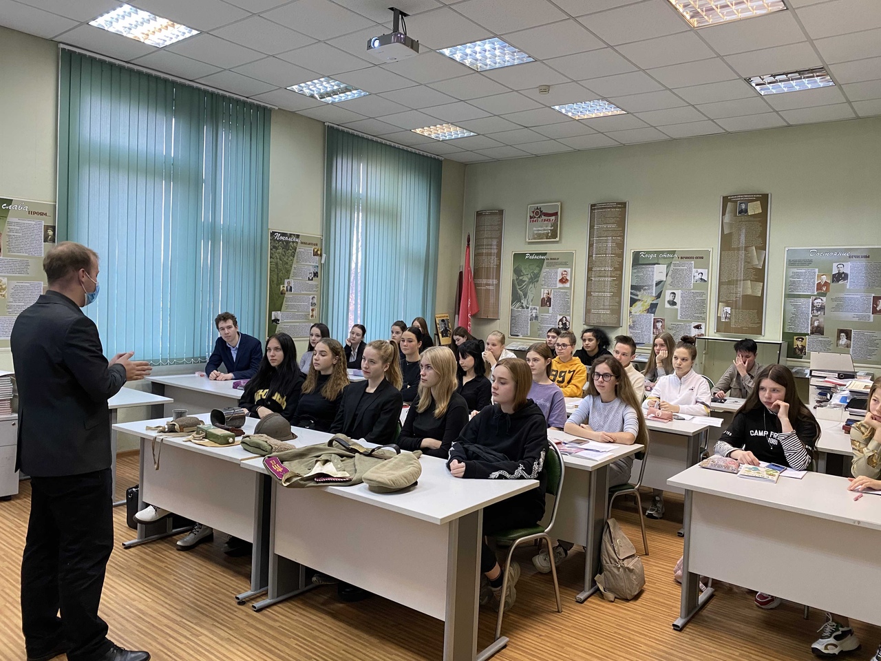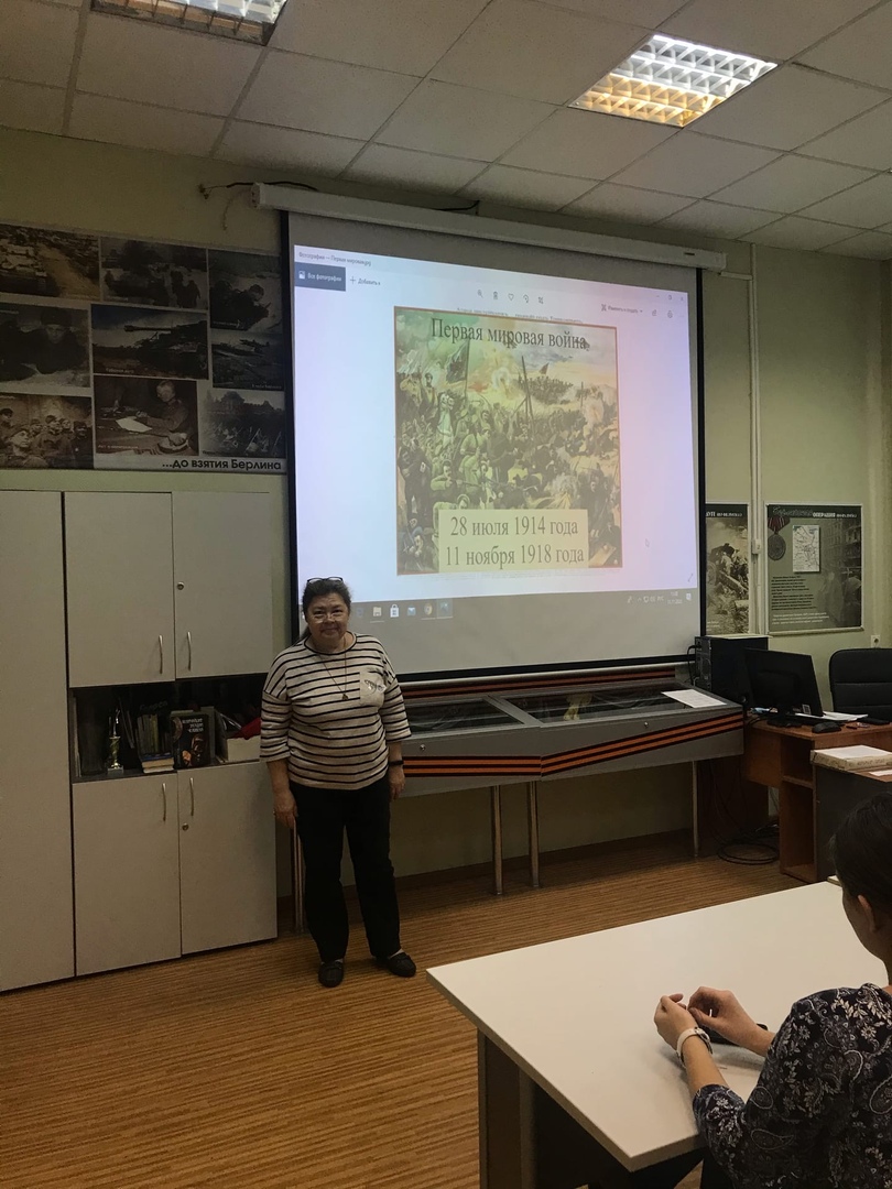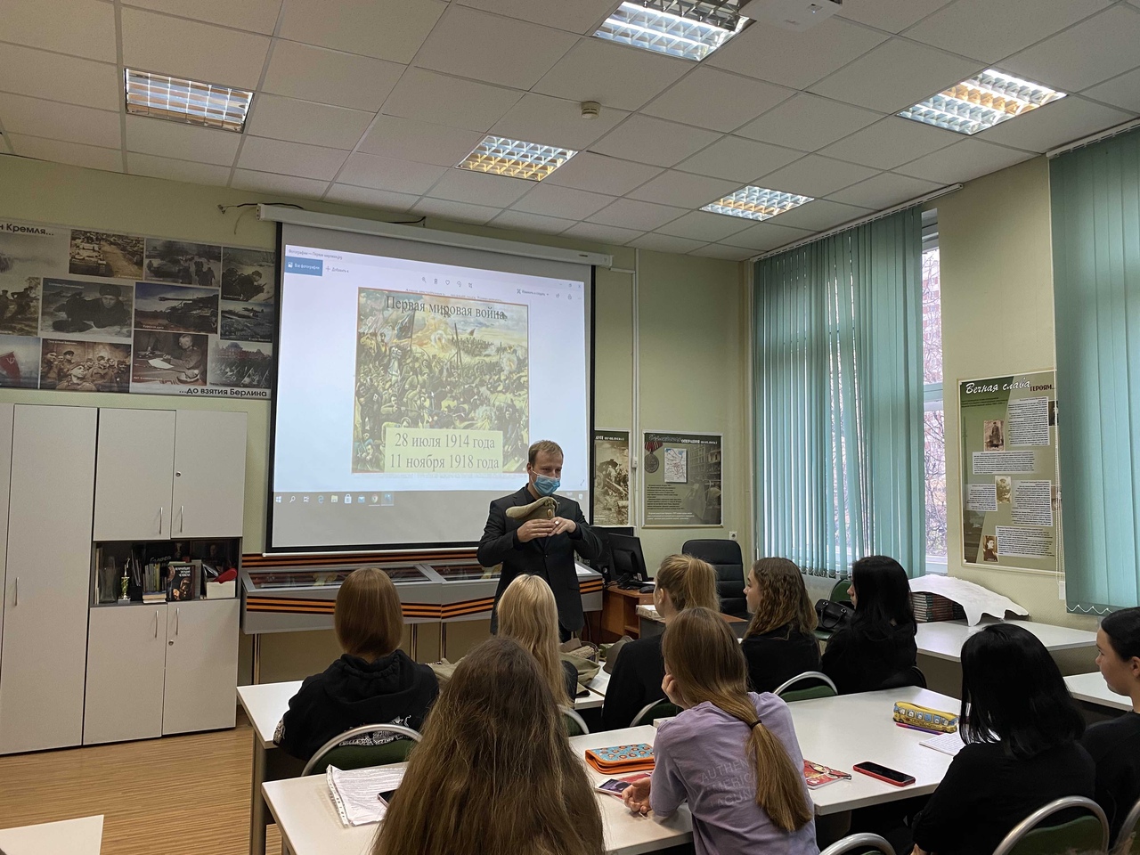 Студентам было рассказано о причинах, поводах, итогах войны. Видеофрагмент и песни того времени позволили студентам погрузиться в атмосферу столетней давности.