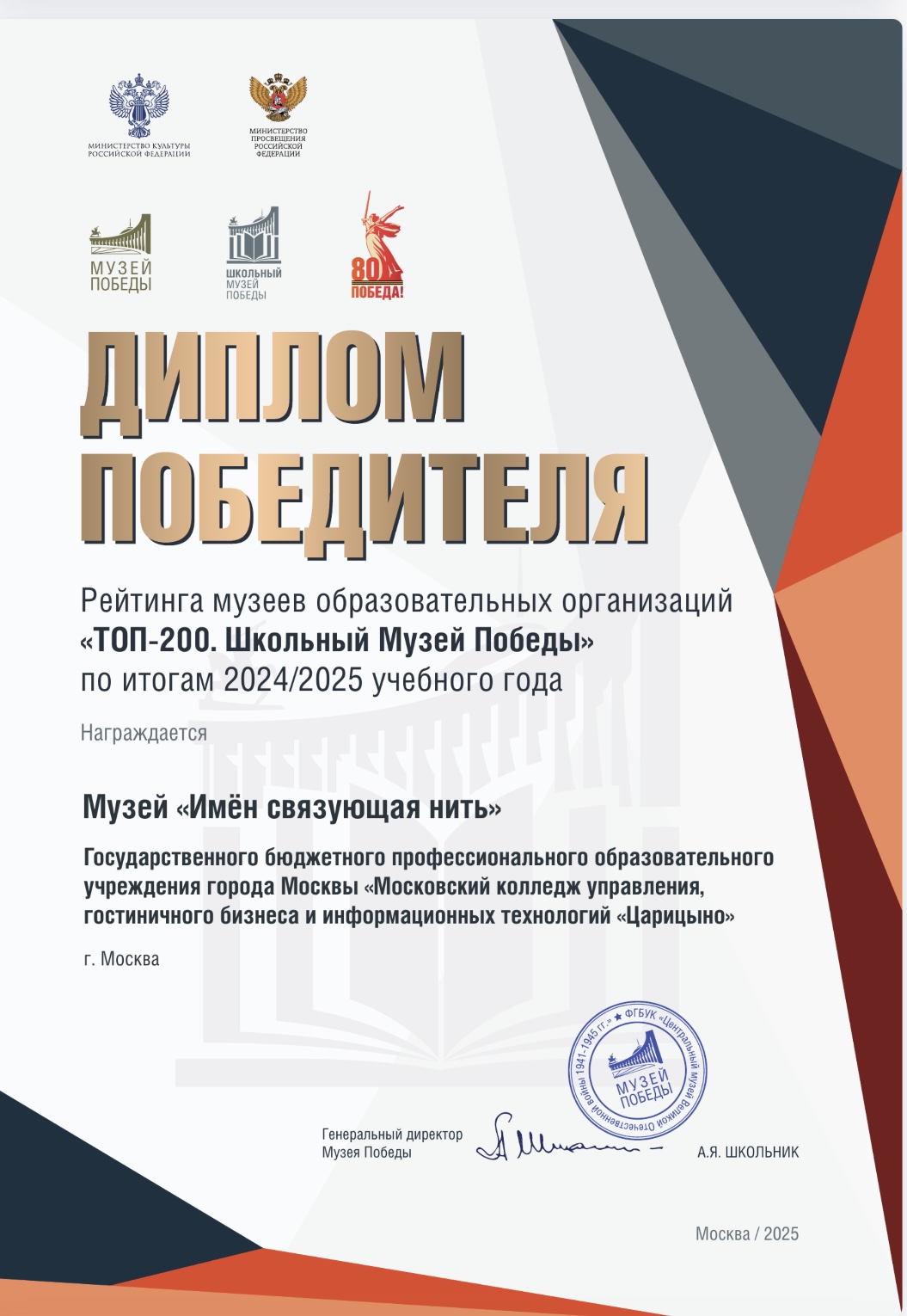 Музей активно принимал участие в проектах и программах Музея Победы, и вошел в столь значимый рейтинг, составленный по результатам оценки активности более 2500 образовательных организаций из всех субъектов Российской Федерации, а также Республик Беларусь, Казахстан и Кыргызстан.