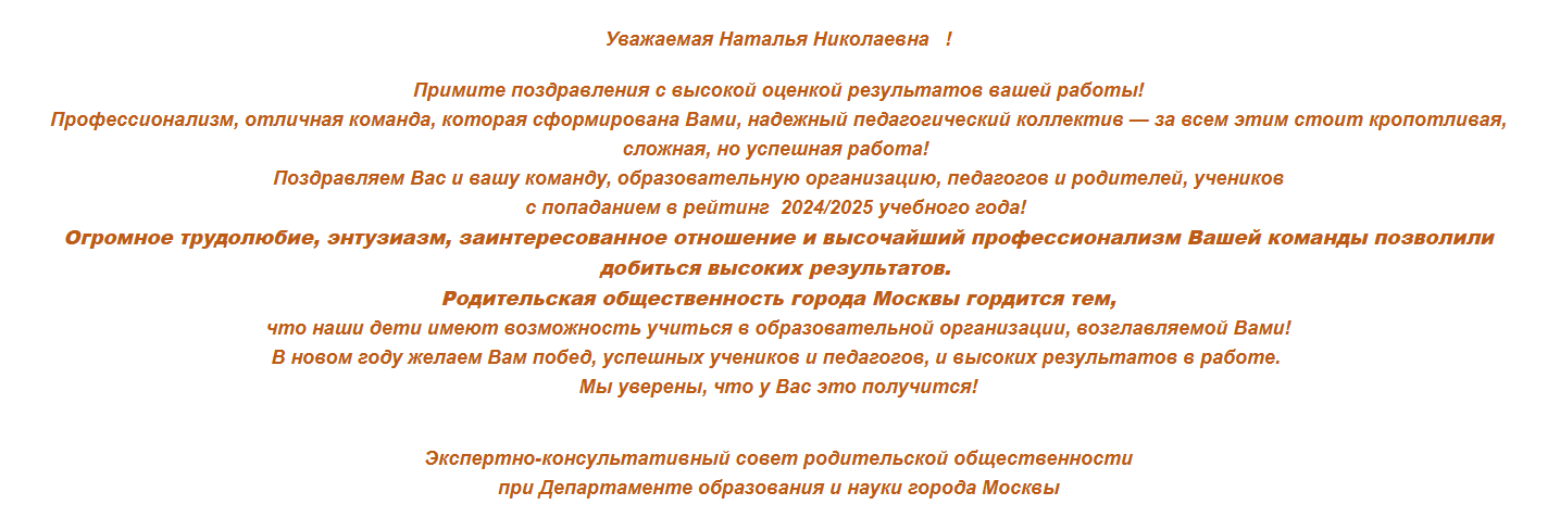 Экспертно-консультативный совет родительской общественности при Департаменте образования и науки города Москвы выразил слова благодарности директору колледжа "Царицыно"!
