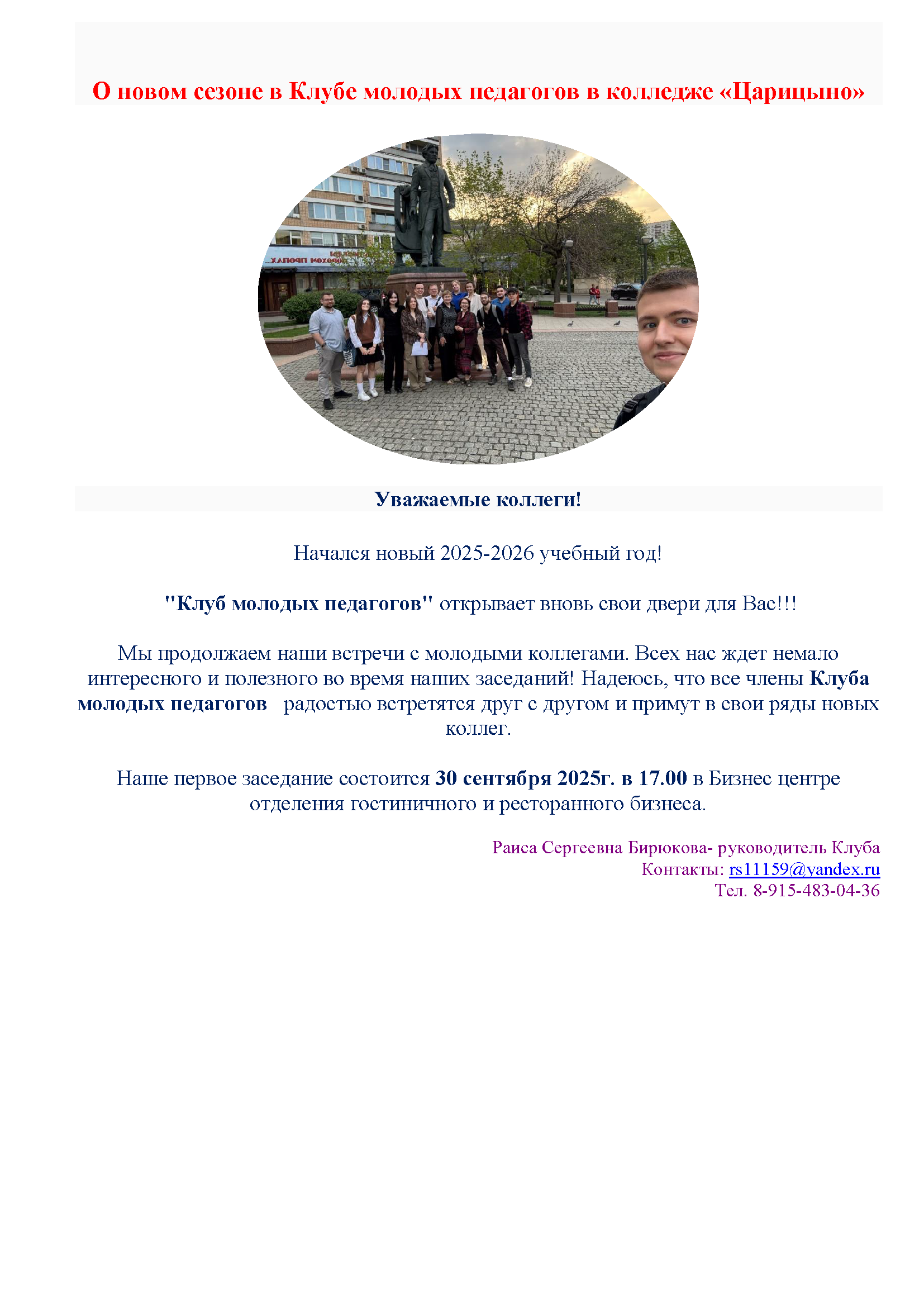 Новый сезон в Клубе молодых педагогов в колледже «Царицыно»!