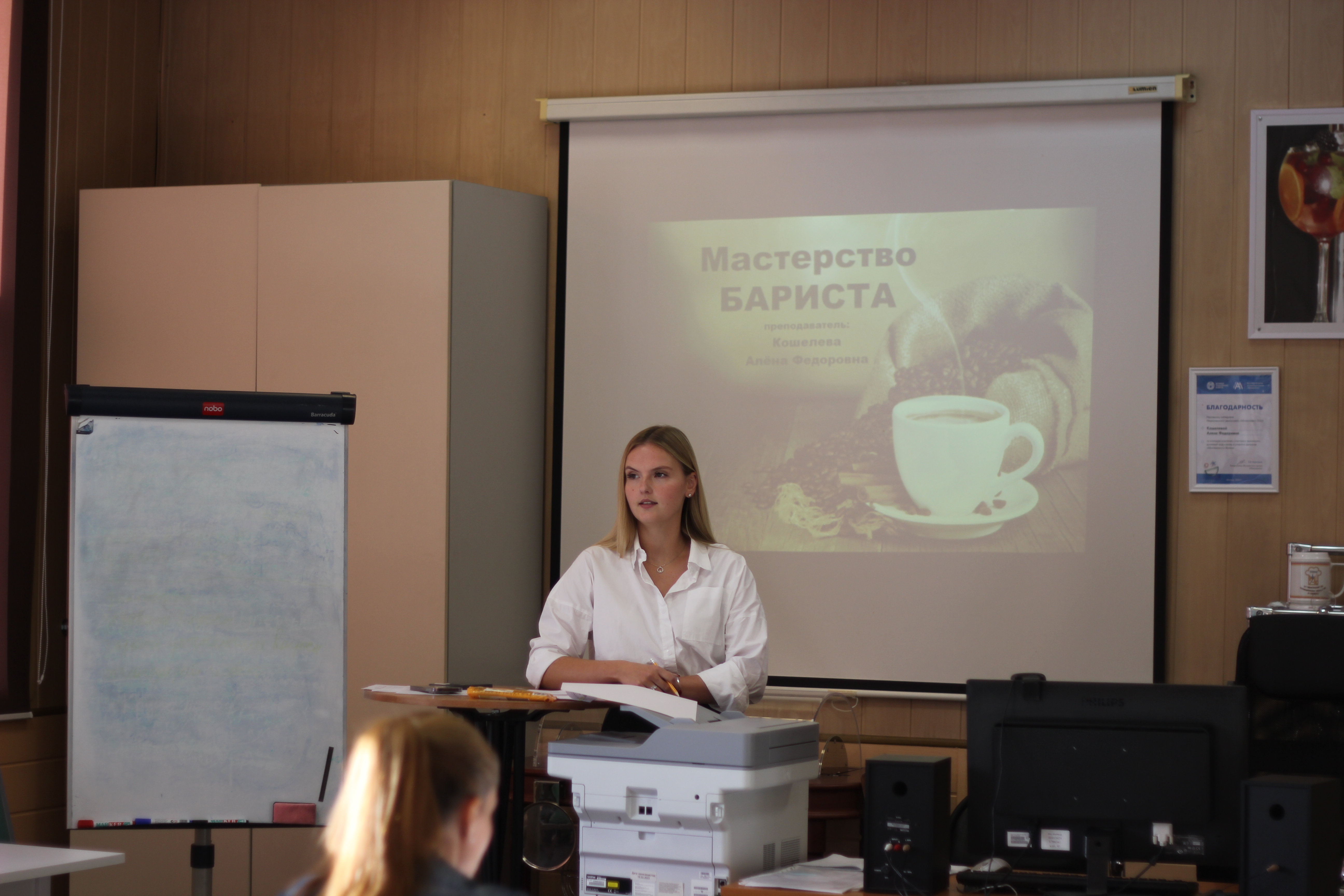 Под руководством преподавателя Кошелевой Алены Федоровны слушатели окунутся в мир кофе и научатся техникам приготовления и подачи кофе и кофейных напитков!