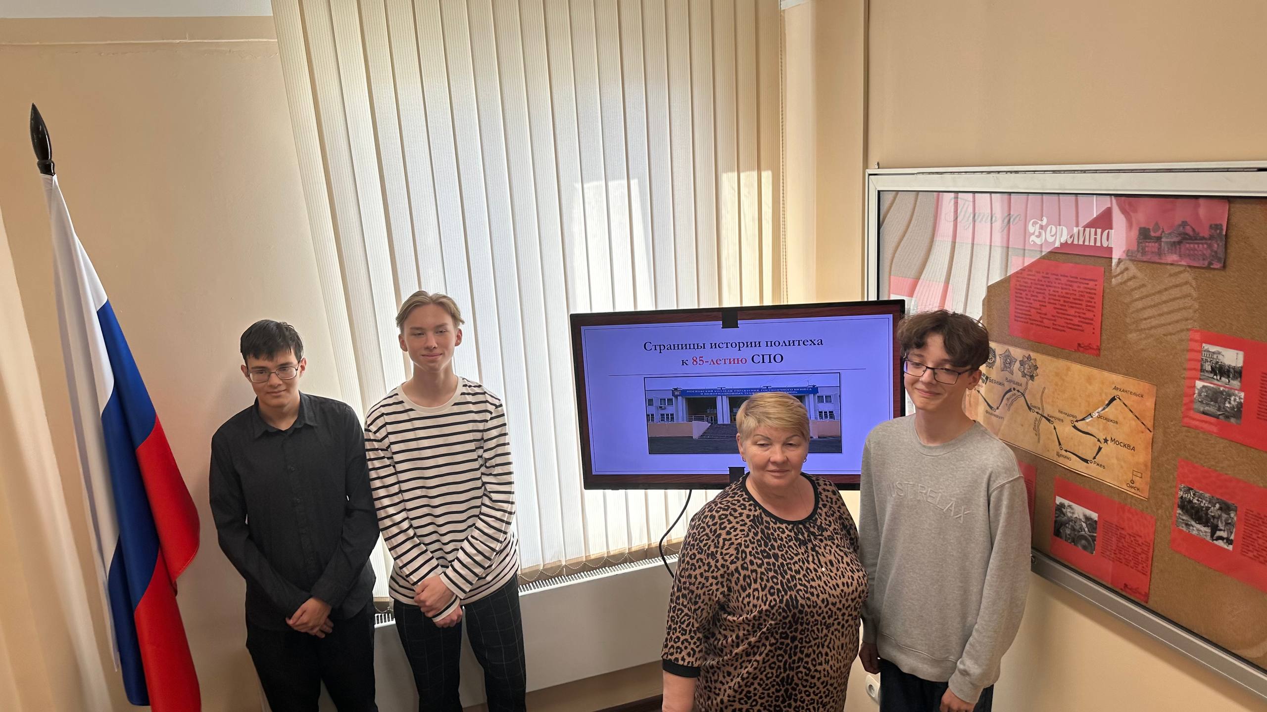 В день 85-летия СПО обучающиеся ВПК «Связь поколений» под руководством Тухтиной Любови Максимовны провели беседу «Страницы истории Политеха» для студентов-первокурсников колледжа «Царицыно».