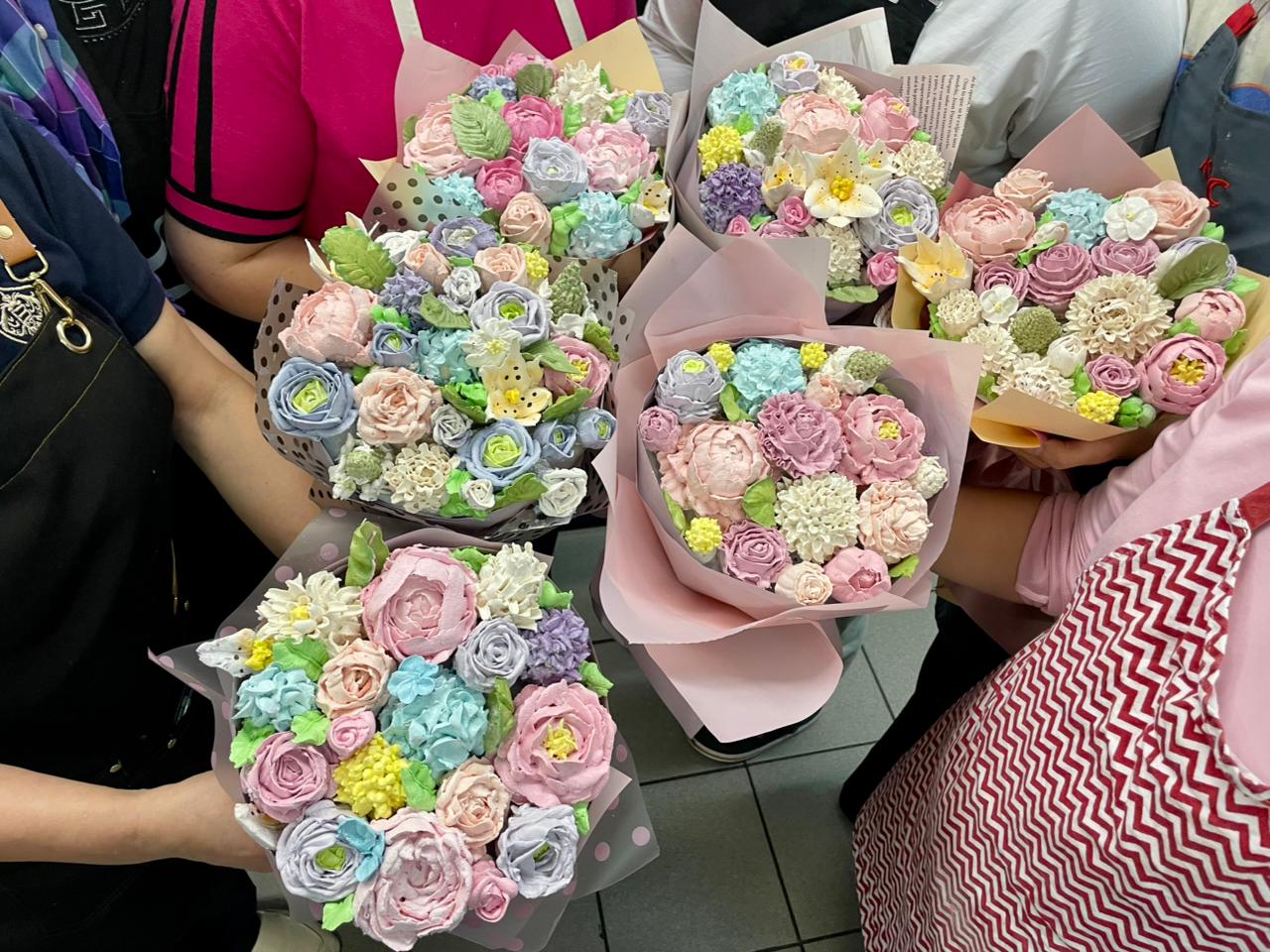 Преподаватель курса кондитер – Ольга Хаустова, щедро делилась с каждым слушателем своими знаниями и опытом по изготовлению цветочных композиций из зефира, а именно: