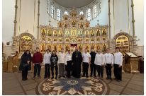 Иерей Петр провел познавательную экскурсию для студентов, рассказав о строительстве Храма, его архитектурных особенностях и святынях. Студенты, под руководством педагога-организатора Виктории Артуровны Отто и социального педагога Екатерины Николаевны Олеховой, побывали внутри Храма, в баптистерии (место, предназначенное для совершения крещения) и поднялись на хоры.